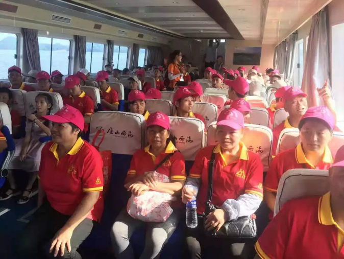 天色剛剛破曉,溫雪平經理和楊燕女士就催促大家早些起床。我們接到公司通知后,萬分激動的同時也不敢有絲毫的懈怠。大家穿著嶄新的工作制服,在籃球場迎接旅游客車的到來,迎接一段美好的旅程。大約6:30左右,汽笛聲緩緩傳來,客車終于到達了本公司。
